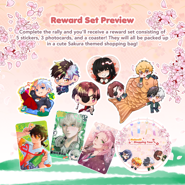 Comes in a Sakura themed shopping bag + 3 photocards, 5 stickers, and 1 coaster!